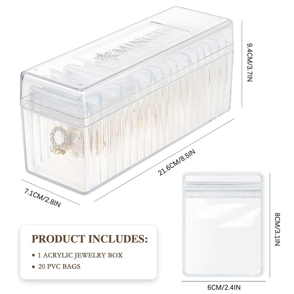 Acrylic Jewelry Box Organizer With 20 Portable Anti Tarnish Jewelry Bags