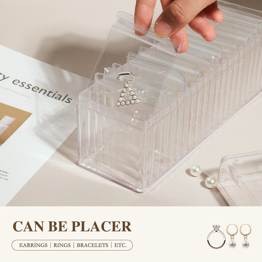 💕【20PCS Portable PVC Pouches】The included 20pcs portable PVC jewelry bag are designed for durability and convenience. Their thick, transparent material resists tearing and securely seals to prevent jewelry from oxidizing.
