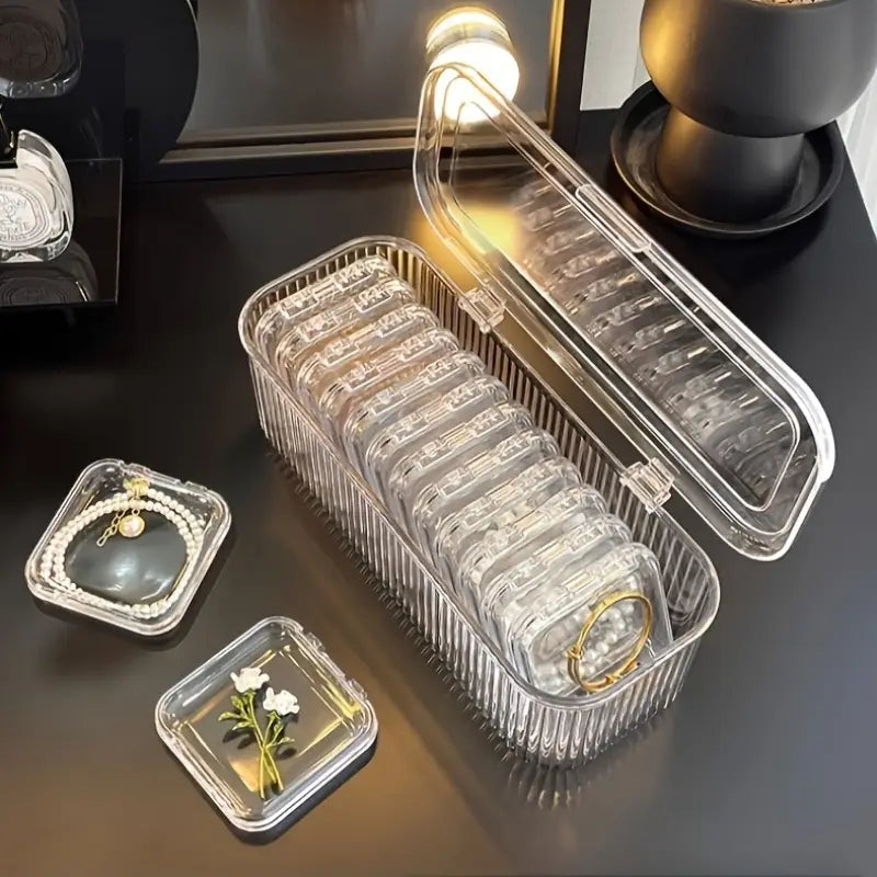 🧼 Dust-proof design – Keeps your delicate items clean and safe.📦 Sleek and stackable – Saves space and gives your dresser a modern look.